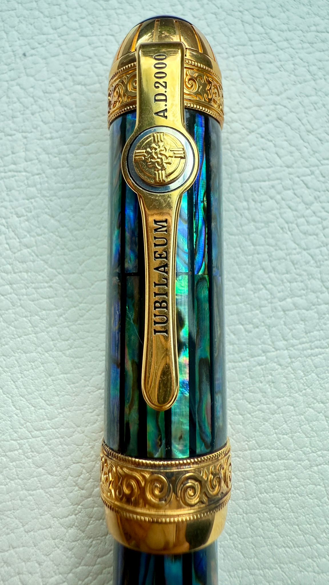 Esta estilográfica exclusiva de Namiki fue creada para conmemorar los dos mil años del calendario cristiano, bajo autorización oficial del Comité del Gran Jubileo del Vaticano. Es una de las piezas más codiciadas dentro de la serie A.D. 2000 y un verdadero objeto de culto entre coleccionistas.
