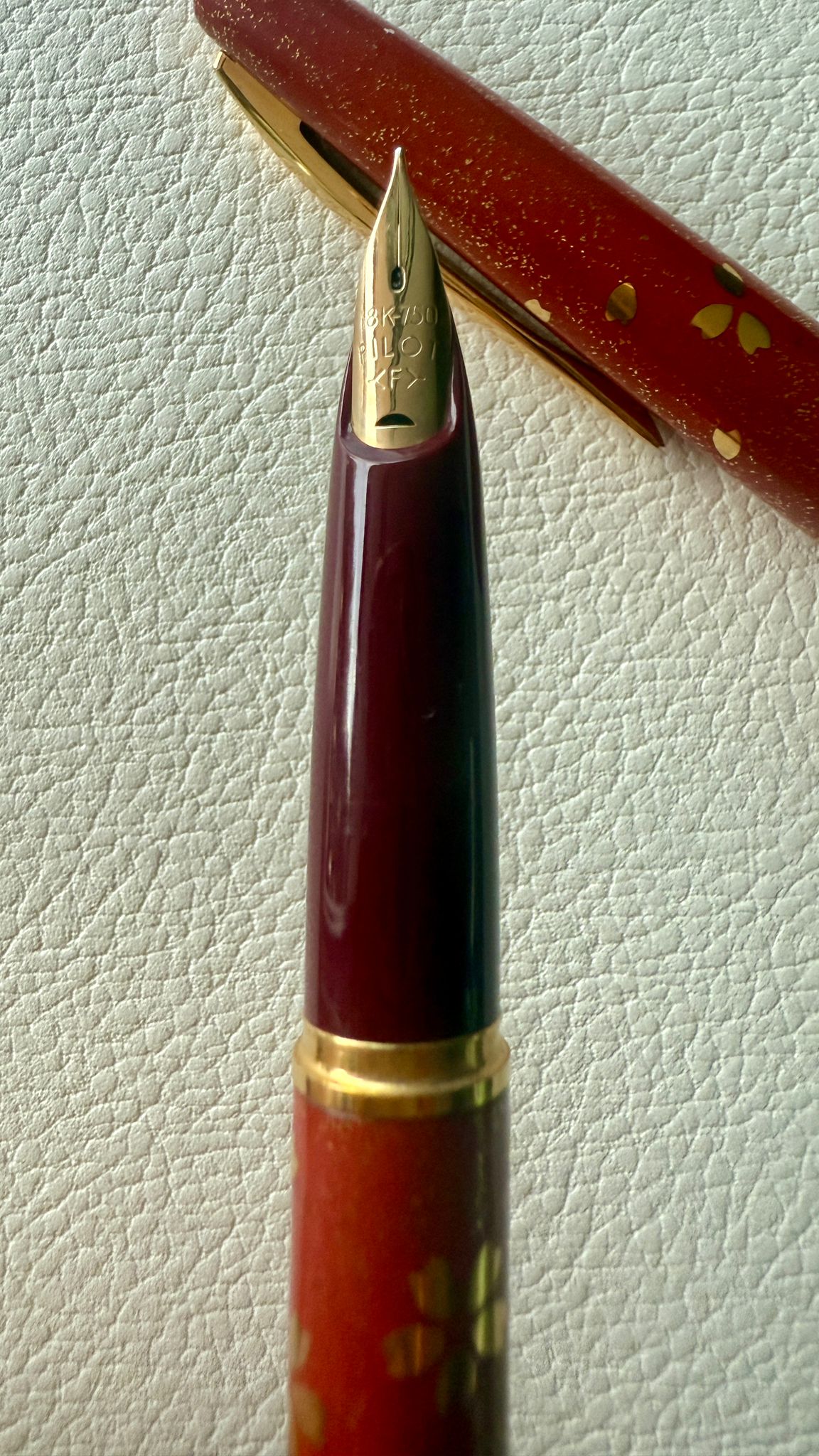 Su plumín incrustado de oro macizo de 18 quilates, punto F (Fine), garantiza una escritura suave y precisa, mientras que su presencia transmite esa calma y perfección tan propias del arte japonés.