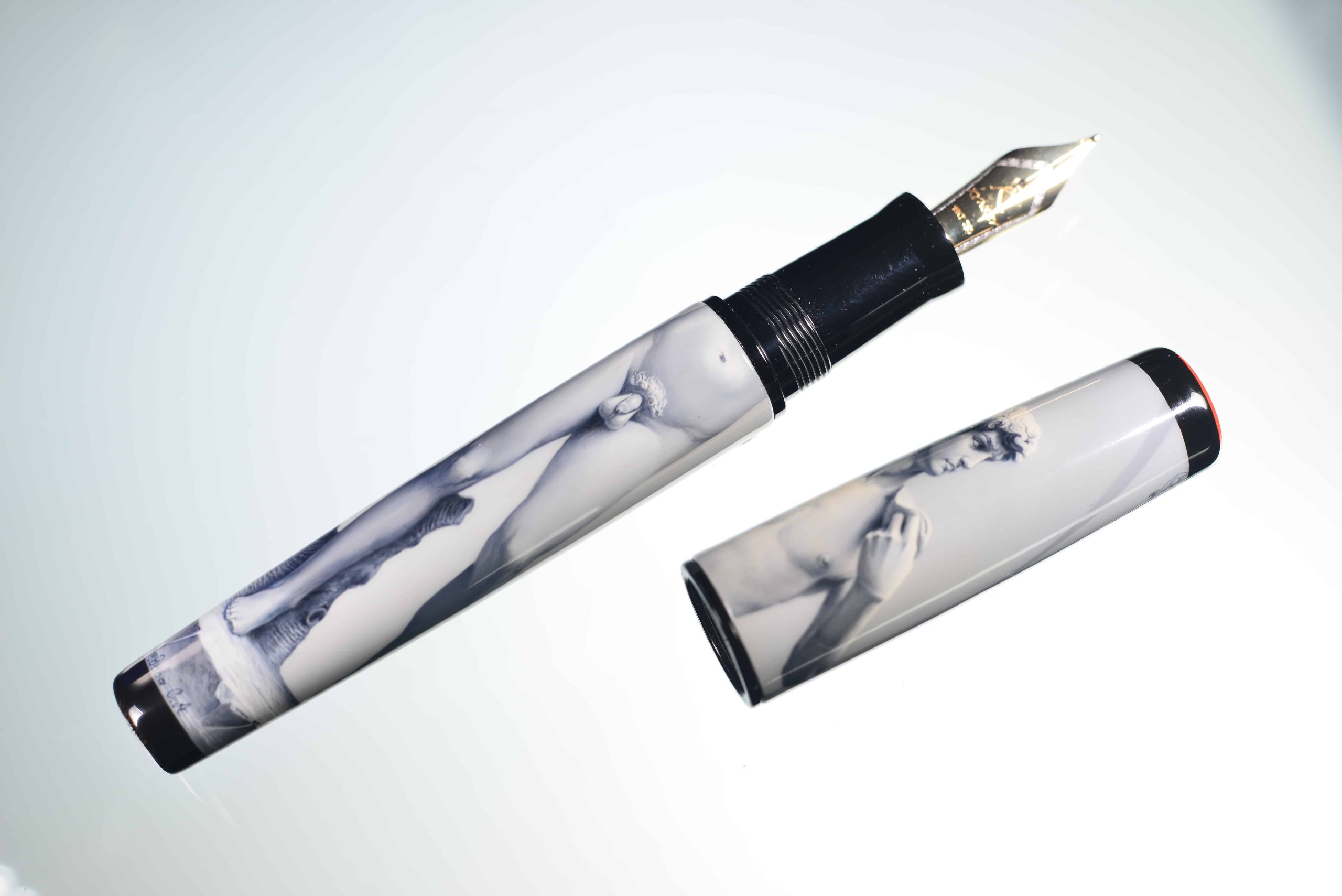Kynsey traslada este espíritu a una pluma excepcional, decorada a mano por los artistas rusos de Natroyka, expertos en miniatura. La representación del David convierte esta pieza en una obra de arte que se puede sostener en la mano.
