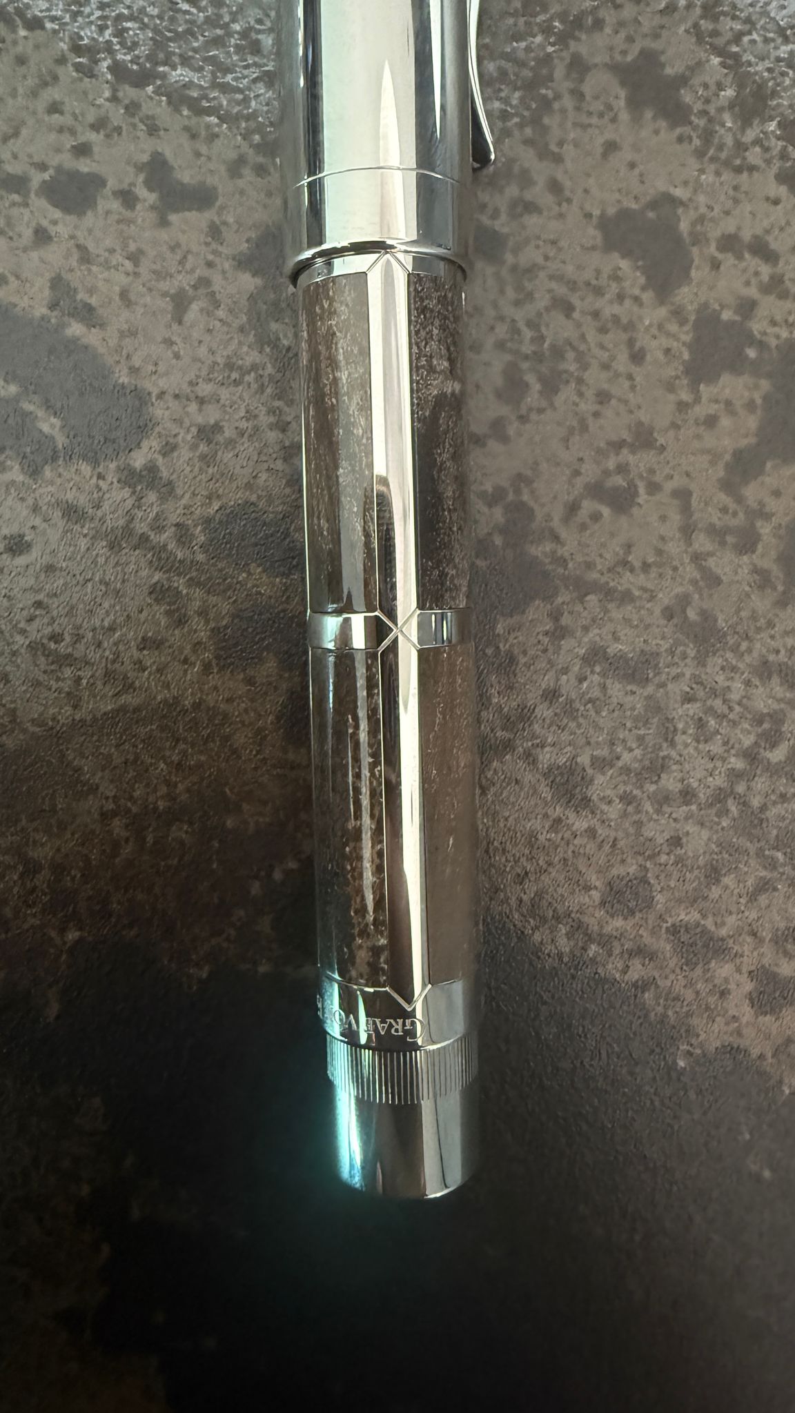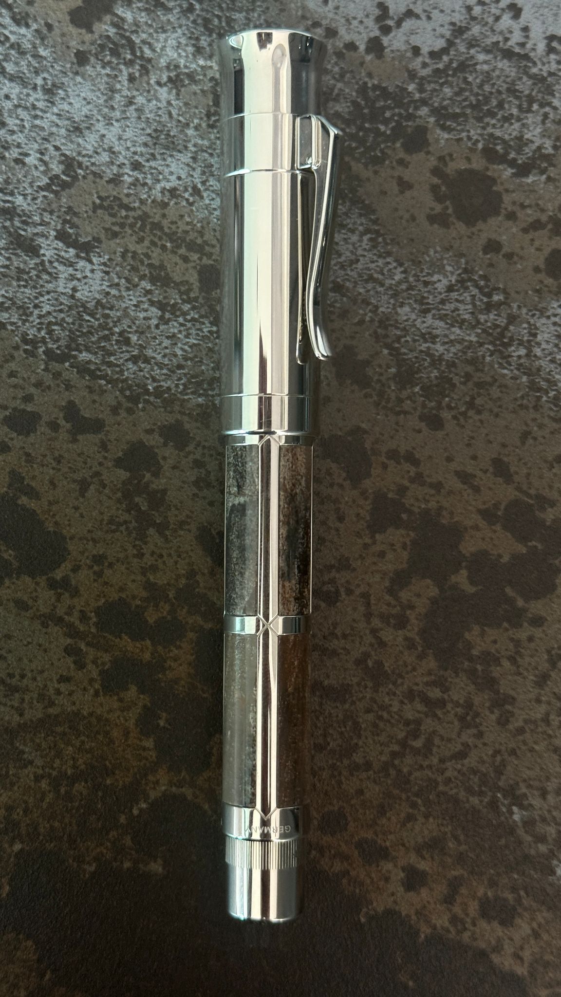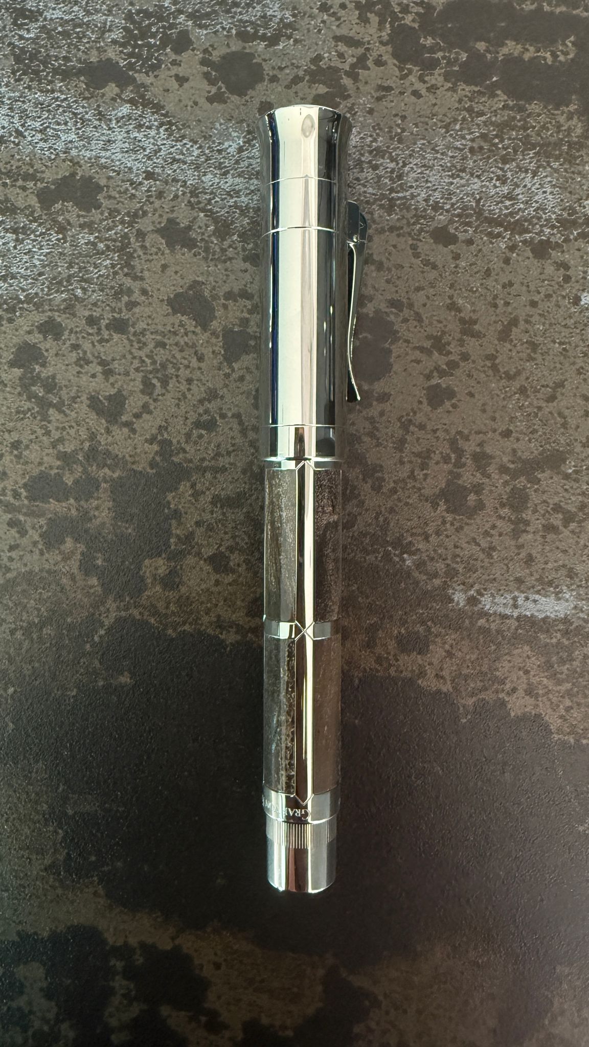 Una estilográfica que fusiona el tiempo geológico con el arte contemporáneo. El testimonio de una historia milenaria en la palma de la mano.