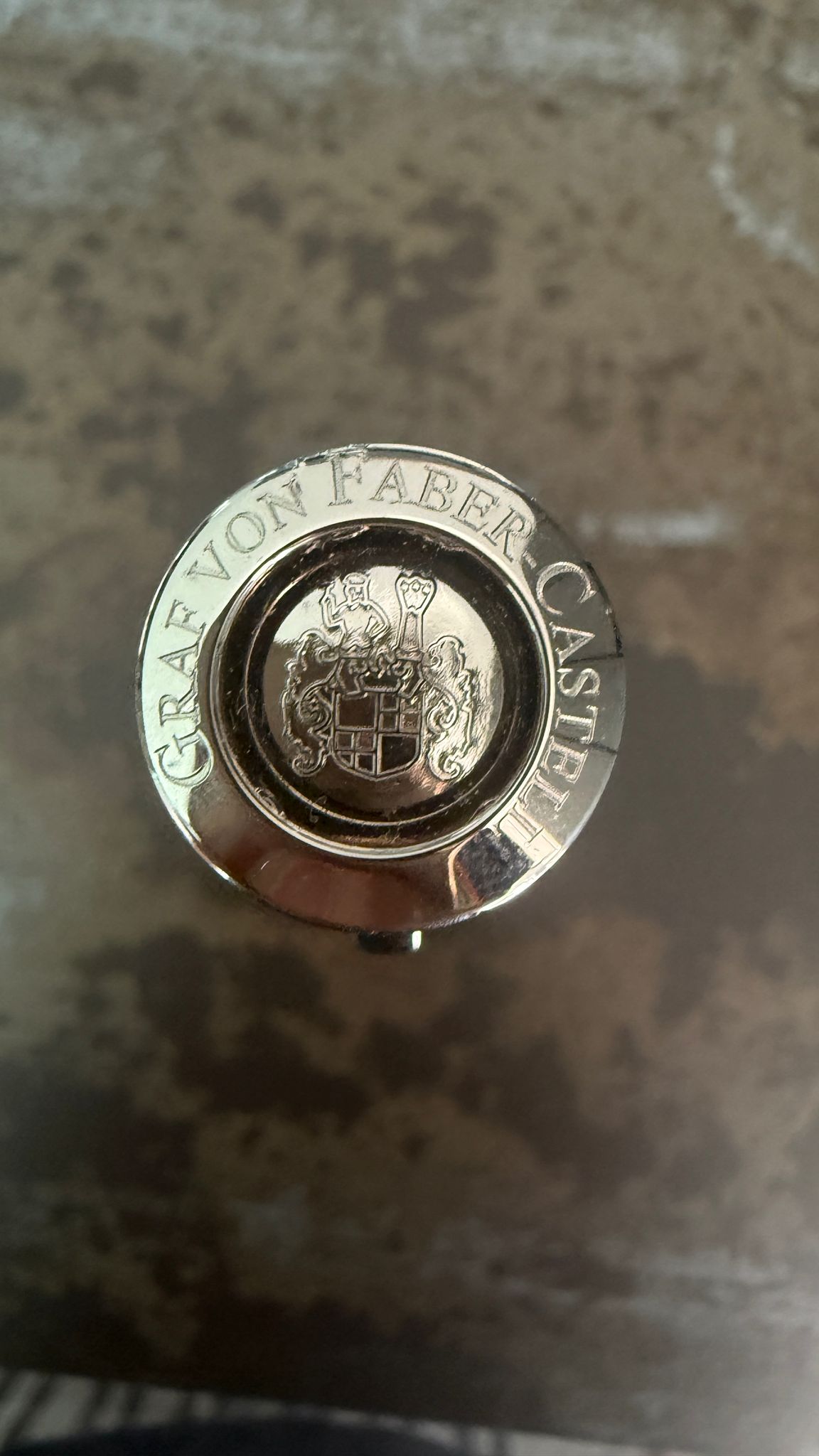 Capuchón: Acabado platinado, grabado con la corona «Graf von Faber-Castell» enmarcando el logotipo familiar.