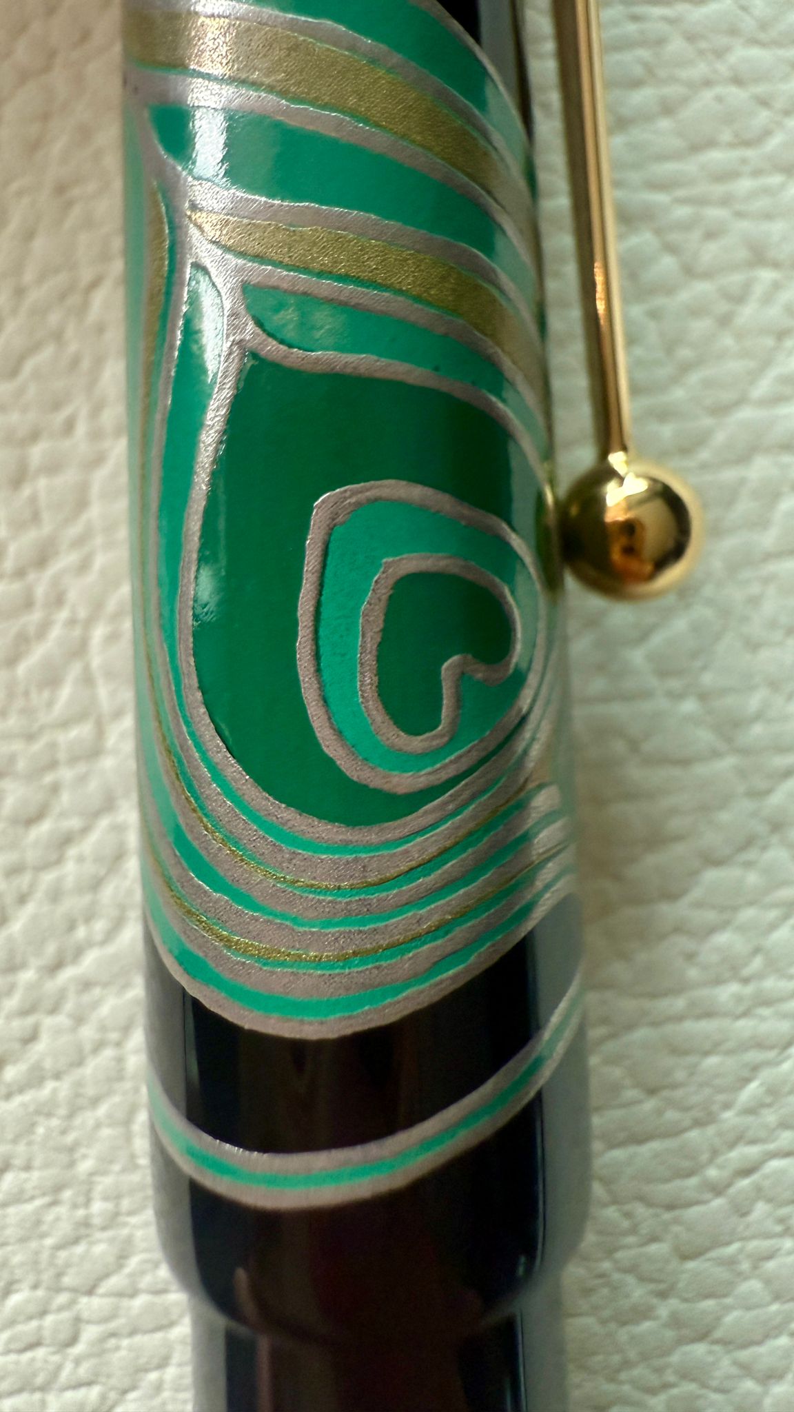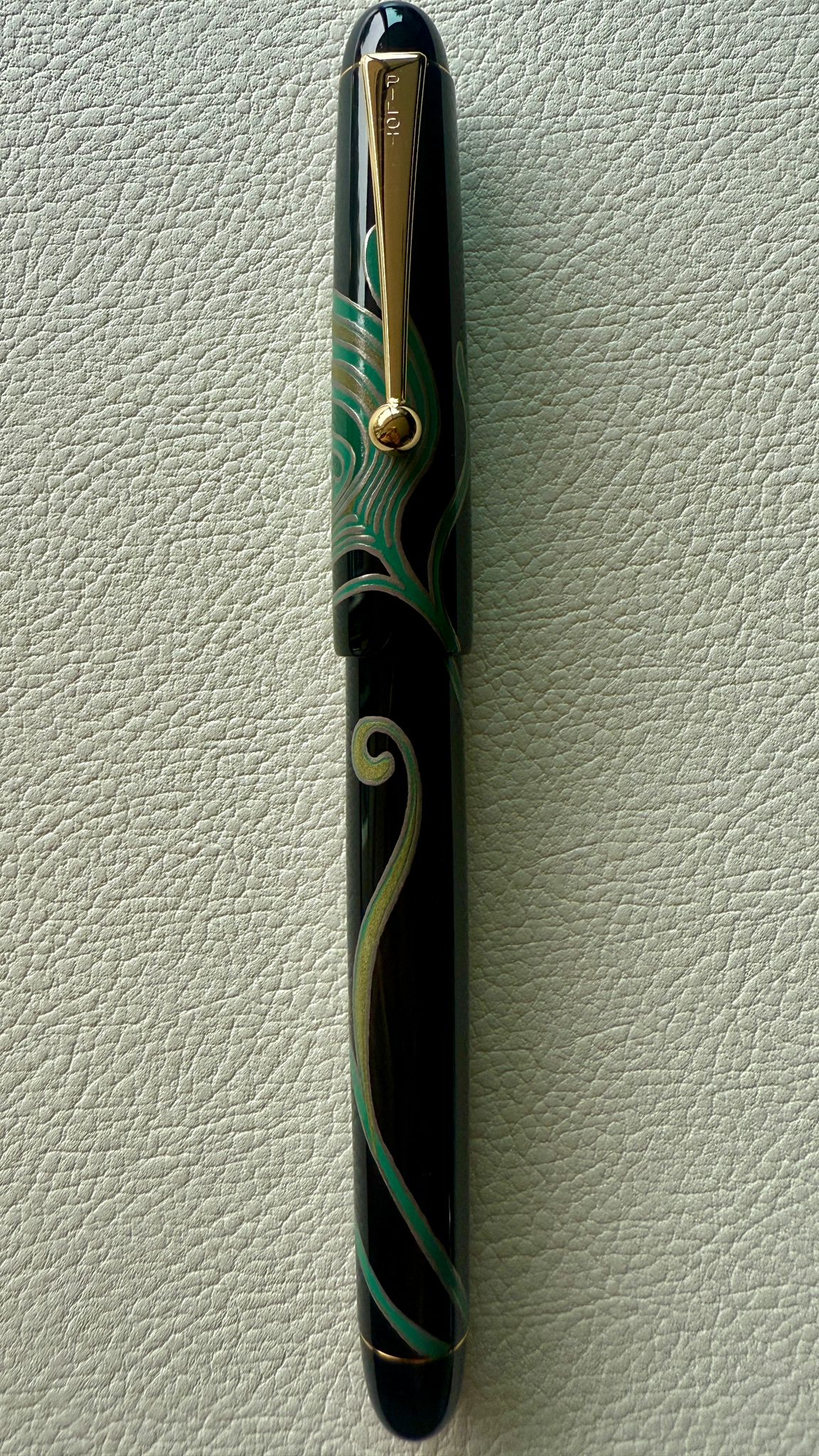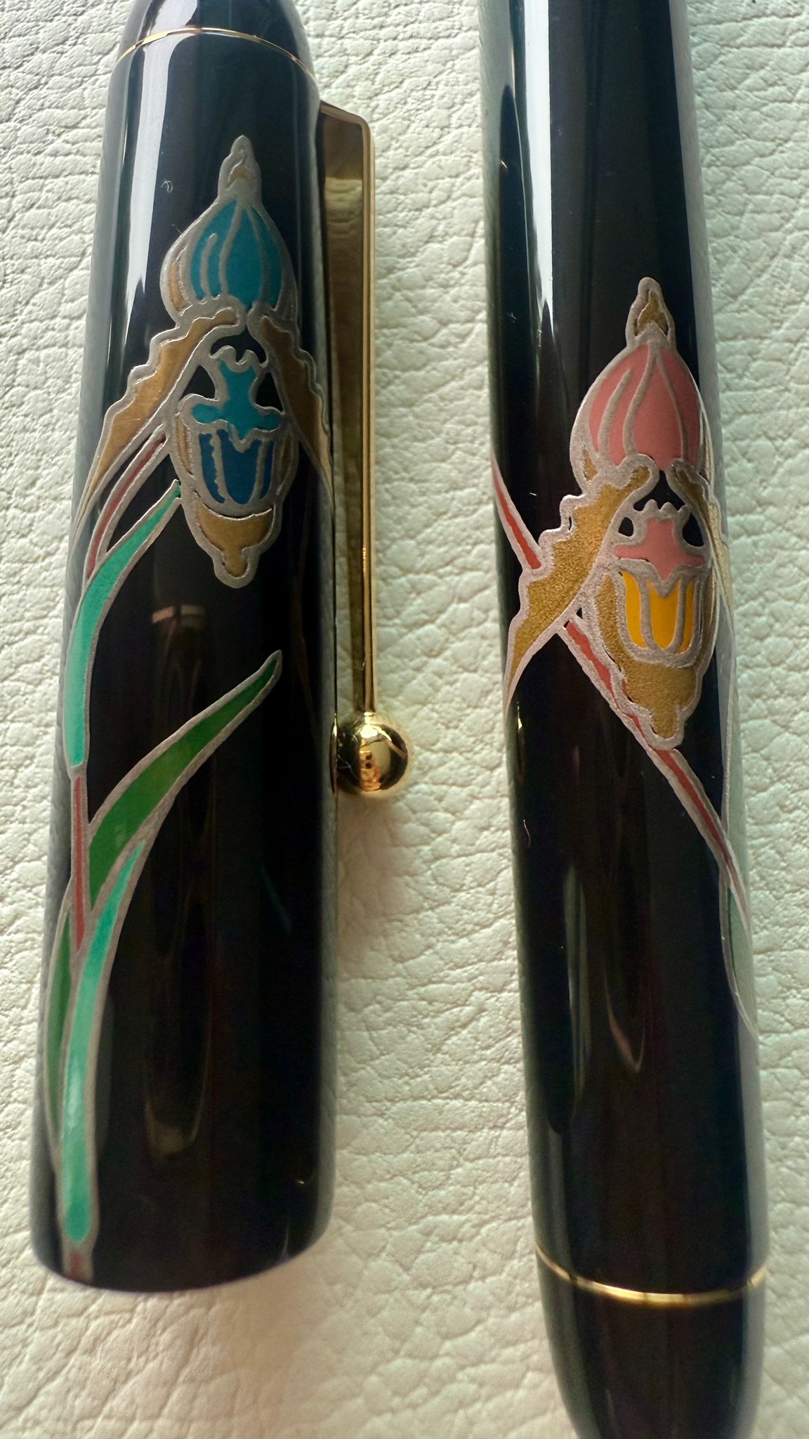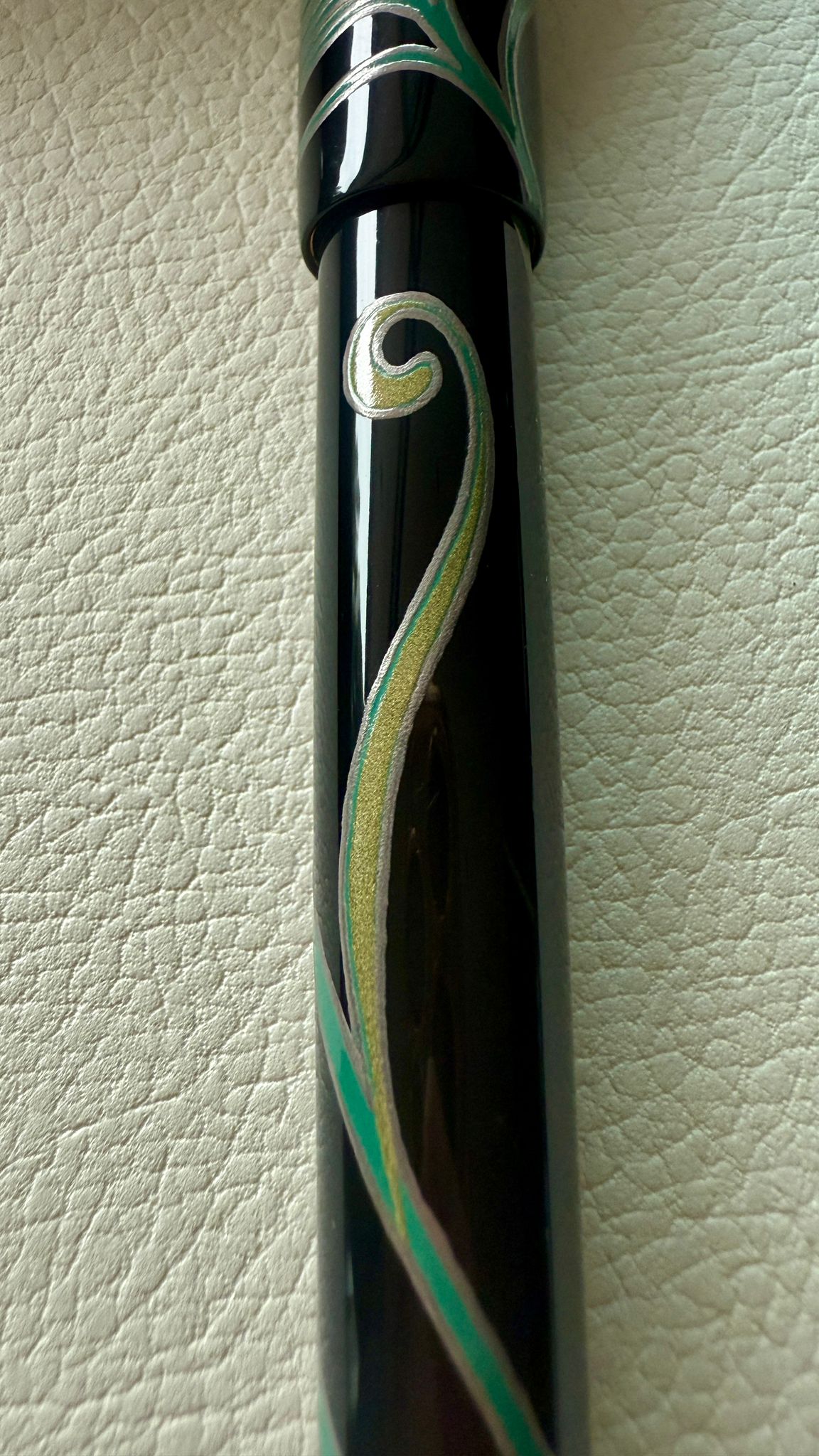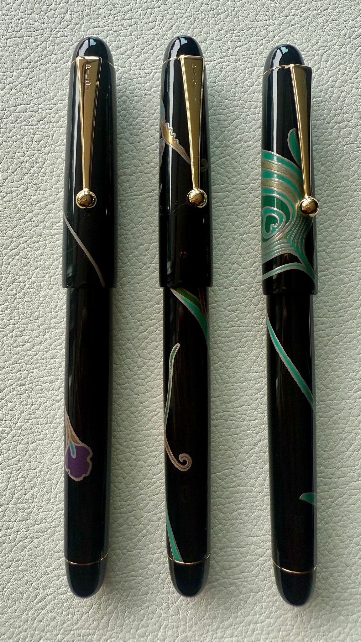 Exclusivo conjunto de tres estilográficas Namiki, creadas en 1991 bajo la dirección artística del reconocido diseñador japonés Jusaburō Tsujimura y elaboradas por los maestros lacadores del colectivo Kokkokai, con la firma del artista Kyusai Yoshida.